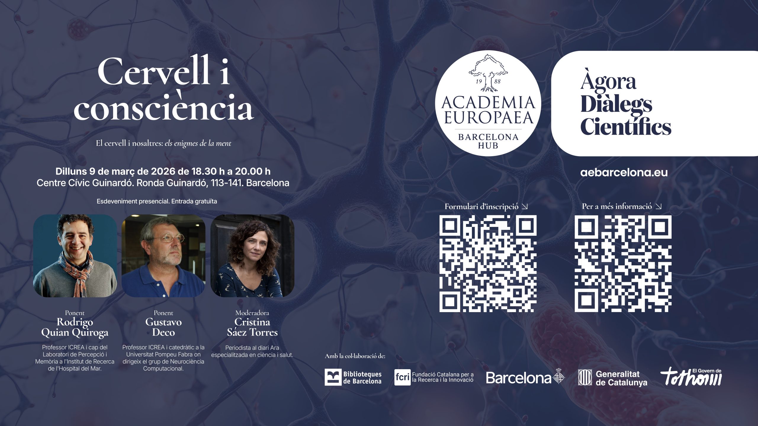 The Barcelona Knowledge Hub of the Academia Europaea organizes a sphere of scientific dialogue that will be developed at two levels: The Frontiers of Science and Technology in Society, at a high academic level, and the Citizen Agora, for a wide local audience.