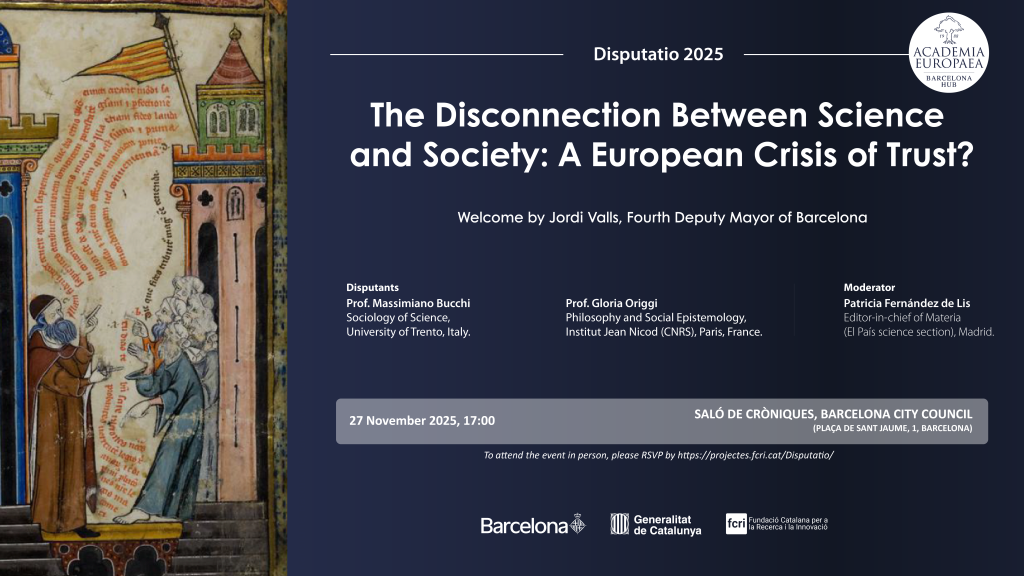 “Àgora Ciutadana”, espai de debat per al públic general del Barcelona Knowledge Hub de l’Academia Europaea (AE-BKH). El biotecnòleg Simón Perera, codirector del projecte de mediació cultural “Una mirada LGTBI+”, i l’arqueòleg Enrique Moral, doctor en Història, especialista en història de la sexualitat, participaran a la sessió titulada “Qui defineix què som? Ciència, gènere i poder”. L’acte, en català, es celebrarà dilluns 29 de setembre a la Biblioteca Sagrada Família-Josep M. Ainaud de Lasarte (18.30 h, c/ Provença, 480, Barcelona) i serà moderat per la periodista especialitzada en ciència, salut i informació internacional Núria Jar.