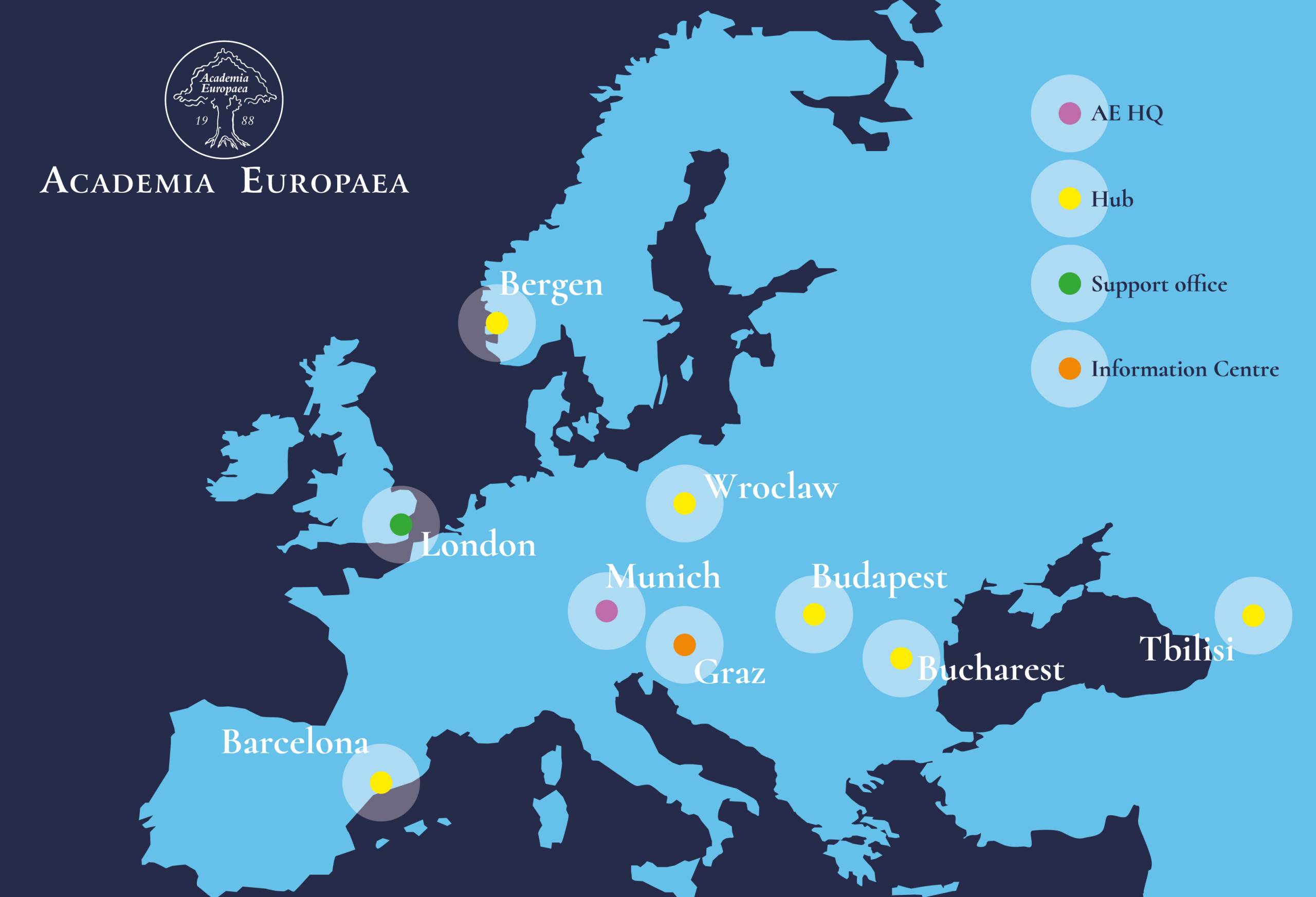 Academia Europaea operates through a network of regional knowledge hubs located in Barcelona, Bergen, Budapest, Bucharest, Munich, Tbilisi and Wroclaw. The area of influence of the Barcelona Knowledge Hub (BKH) of Academia Europaea (AE) includes the Mediterranean and Southern European regions. The AE-BKH began its operations in 2013.
